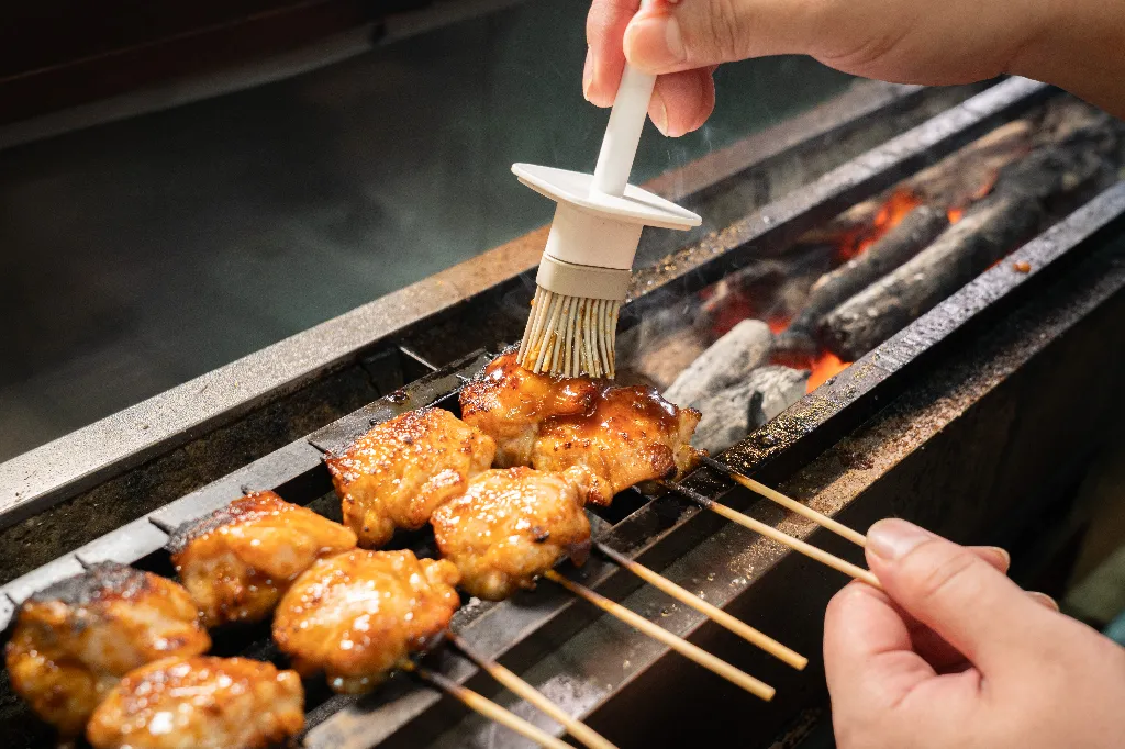こだわりの備長炭で丁寧に焼き上げる本格炭火焼き鳥は、当店の看板メニュー。